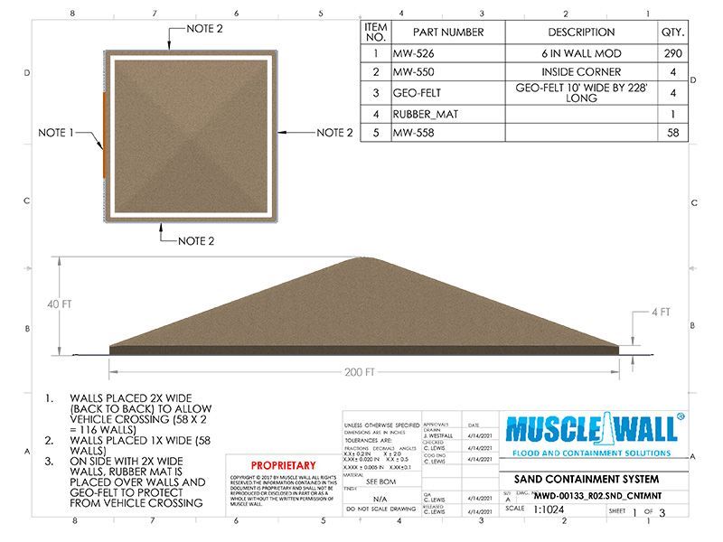 The Muscle Wall containment system was tested at the Muscle Wall field testing site located in Logan, Utah. The purpose of the testing was to acquire information pertaining to the foam filled Muscle Wall capabilities when used for containment.
