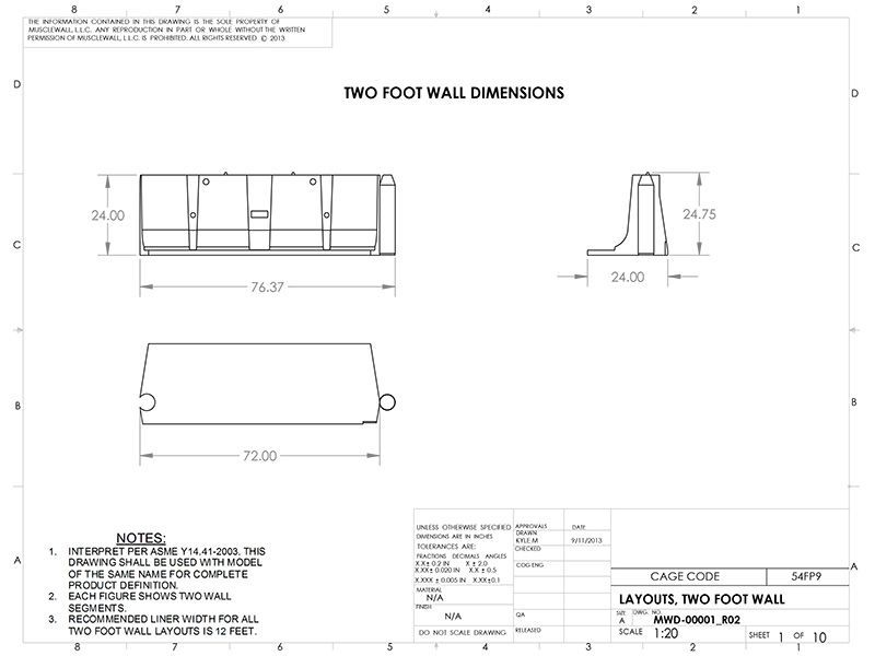 The included diagram shows the profile loading of a single 8-Foot Muscle Wall segment based on the included assumptions.