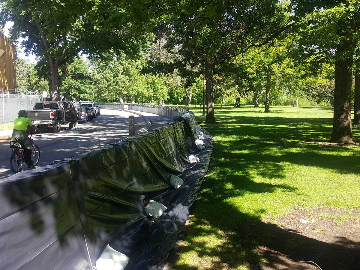 Muscle Wall can be deployed rapidly when time is short. With just a small team of people, a hundred feet of Muscle Wall can be fully deployed in as little as 30 minutes. If sandbags were to be used on that same scale it would take well over a day. Muscle Wall can even be deployed when floodwater has already began to rise. Each wall can be floated into place and sunk using the same water that the wall is protecting against.