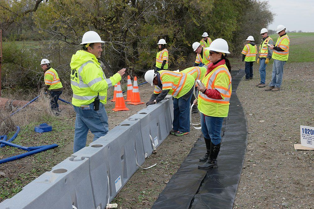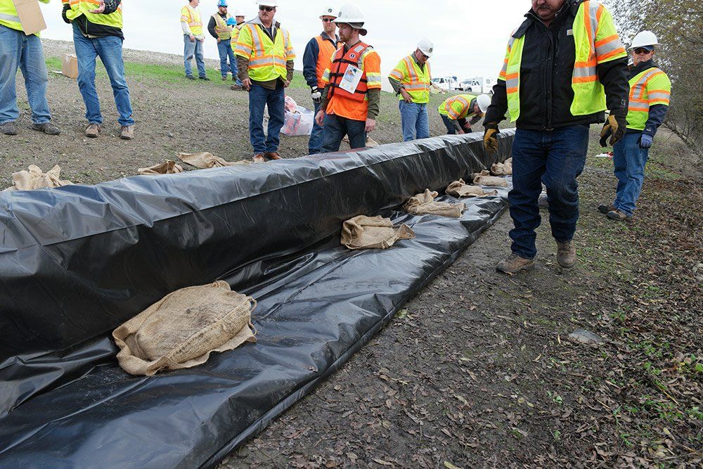 California DWR Flood-Fighting Specialists being trained on how to most effectively install Muscle Wall to raise a levee